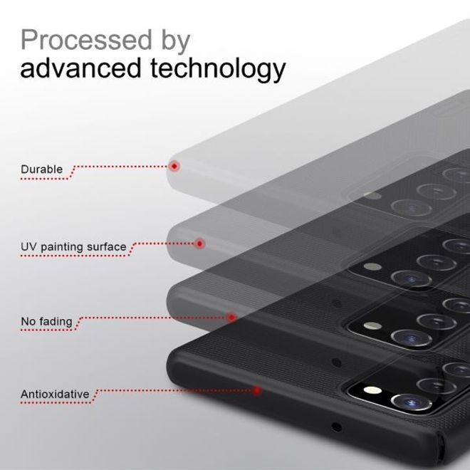 Dein Handy findet in der Samsung Galaxy Note 20 Nillkin Super Frosted Shield Hülle jetzt ein sicheres Zuhause. Die gerippelte Oberfläche der Samsung Galaxy Note 20 Hülle garantiert einen besseren Grip und weist Schmutz, Wasser und Fettflecken kompromisslos ab.