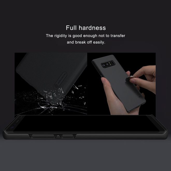 Dein Handy findet in der Samsung Galaxy Note8 Nillkin Super Frosted Shield Hülle jetzt ein sicheres Zuhause. Die gerippelte Oberfläche der Samsung Galaxy Note8 Hülle garantiert einen besseren Grip und weist Schmutz, Wasser und Fettflecken kompromisslos ab.
