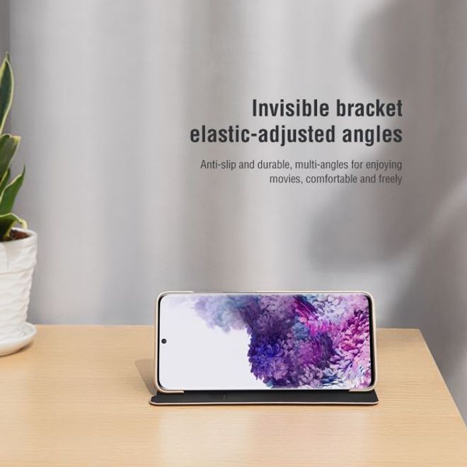 Das Kunstleder Case lässt dein Samsung Galaxy S20+ nicht nur optisch elegant aussehen, sondern bietet deinem Handy inklusive des Displays den idealen Schutz. Die Nillkin Hülle ist aus Kunstleder, Polycarbonat und Kunststoff gefertigt und wurde speziell auf das Samsung Galaxy S20+ angepasst. Die Display-Klappe schützt nicht nur den Bildschirm, sondern bietet dir im Innern ein Kartensteckfach für Kreditkarten, Bankkarten, Ausweis oder Visitenkarten. Ausserdem verfügt die Hülle über eine praktische Aufstellfunktion, die es dir ermöglicht dein Samsung Galaxy S20+ bequem hinzustellen, um beispielsweise Videos oder Bilder anzusehen.