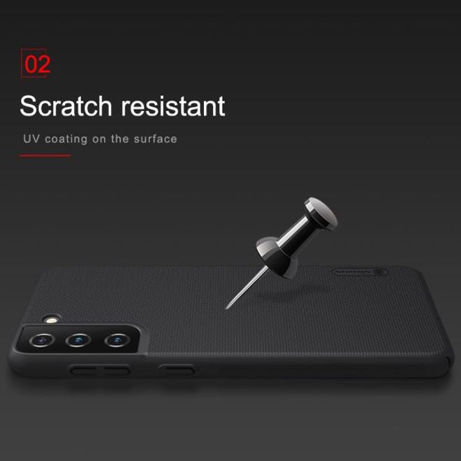 Dein Handy findet in der Samsung Galaxy S21+ Nillkin Super Frosted Shield Hülle jetzt ein sicheres Zuhause. Die gerippelte Oberfläche der Samsung Galaxy S21+ Hülle garantiert einen besseren Grip und weist Schmutz, Wasser und Fettflecken kompromisslos ab.