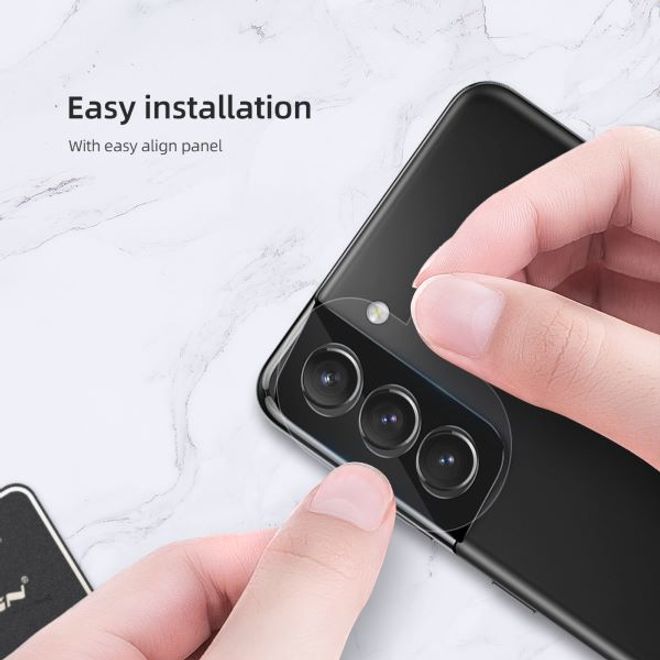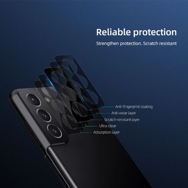 Das Kamera Schutzglas aus der InvisiFilm AR Series von Nillkin schützt nicht nur die Kameralinsen vom Samsung Galaxy S21+, sondern den gesamten Kamerabuckel auf der Rückseite. Das Kamera Schutzglas bewahrt deine Rückkamera zuverlässig vor Kratzern und Verschmutzungen, ohne dabei die Foto- und Videoqualität zu beeinträchtigen.