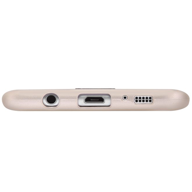 Auf den ersten Blick handelt es sich bei der Nillkin Super Frosted Shield Samsung Galaxy S7 Edge Hülle um eine ganz normale Handyhülle. Schaut man aber genauer hin, fällt einem sofort die unebene Oberfläche auf der Rückseite auf. Die Rückseite des Samsung Galaxy S7 Edge Cases in gold beinhaltet ultra feine Punkte, die fast schon für eine optische Illusion sorgen. Sie sind ein elegantes Detail, das auch eine Funktion hat. Durch die Rippelung ist die Oberfläche weniger rutschig und das Samsung Galaxy S7 Edge liegt sicherer in der Hand.