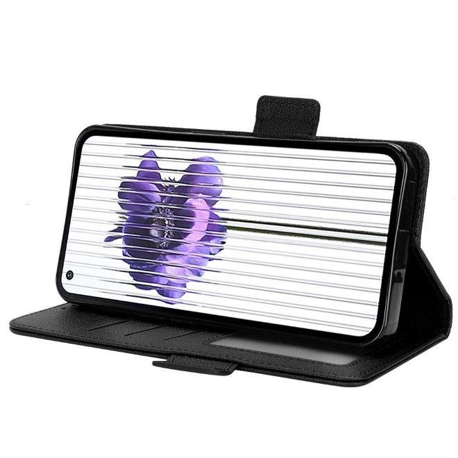 Die multifunktionale Nothing phone (1) Schutzhülle aus der Litchi Leder Bookcover Series bietet alles, was dein Smartphone benötigt: Einen Rundumschutz, Stauraum für Karten oder Geldscheine, sowie eine integrierte Standfunktion. Damit kannst du dein Nothing phone (1) sicher aufstellen und zum Beispiel bequem Video's anschauen. Nebst diesen Funktionalitäten dieser Nothing phone (1) Hülle, verleiht dieses Bookcover deinem Smartphone einen klassischen Leder Look. Dank des Magnetverschlusses bietet die Nothing phone (1) Hülle in jeder Situation Schutz für dein Smartphone.