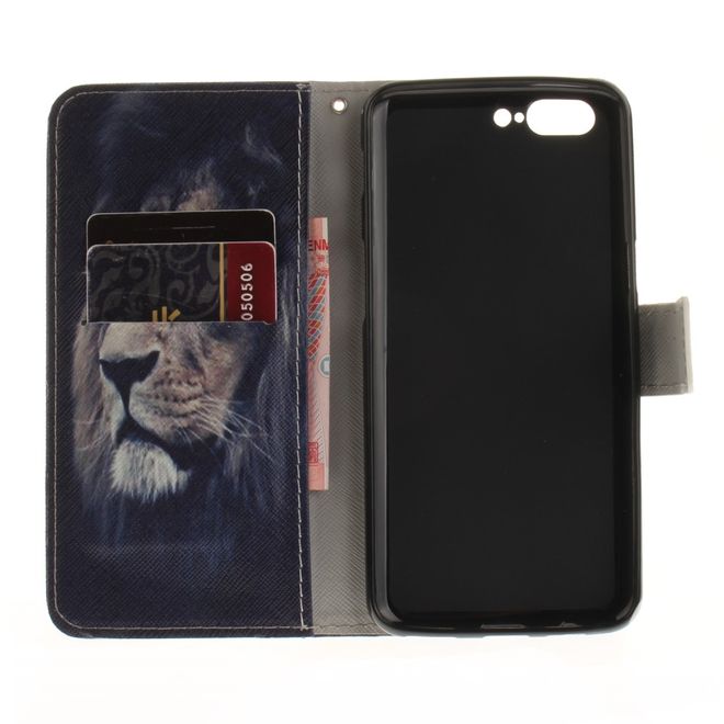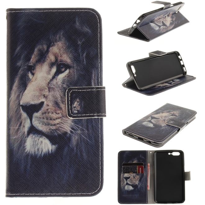 OnePlus 5 Handy Hülle - Leder Bookcase - mit Standfunktion - Löwe