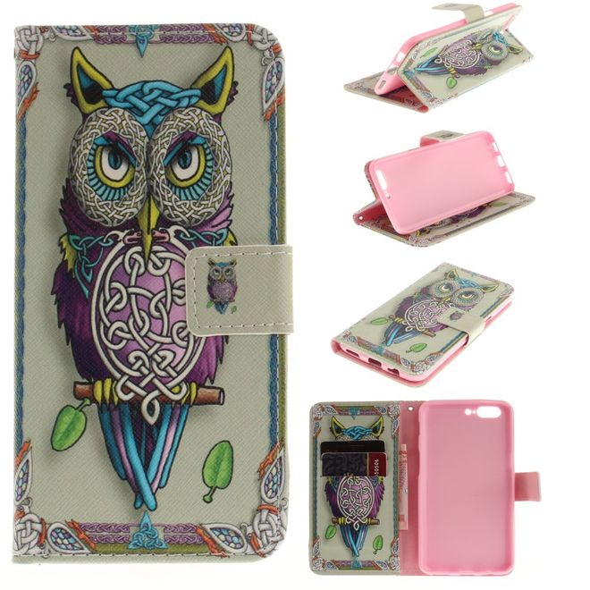 OnePlus 5 Handy Hülle - Leder Bookcase - mit Standfunktion - wunderschöne Eule