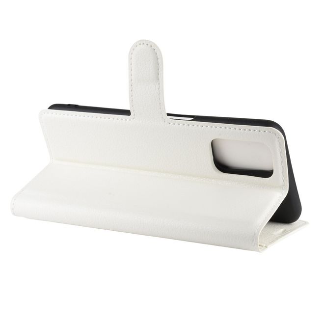 Oppo A52 Handy Hülle - Litchi Leder Bookcover Series - weiss