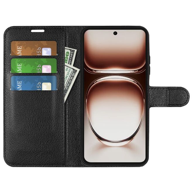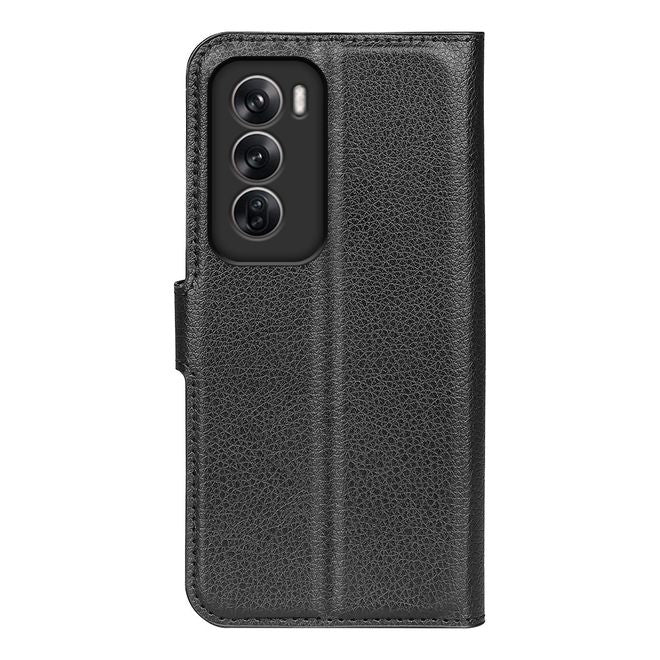 Oppo Reno12 5G Handy Hülle - Litchi Leder Bookcover Series - schwarz
