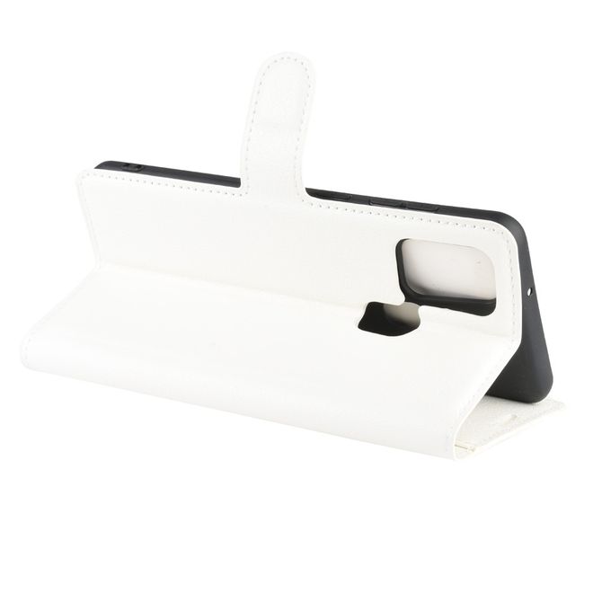Samsung Galaxy A21s Handy Hülle - Litchi Leder Bookcover Series - weiss
