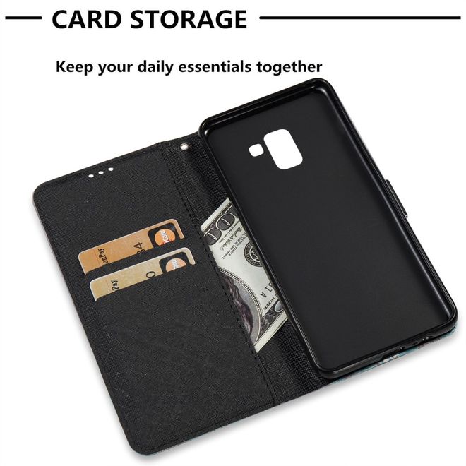 Samsung Galaxy A8+ (2018) Handyhülle - Case aus Leder - mit 3D Effekt - blaue Blumen