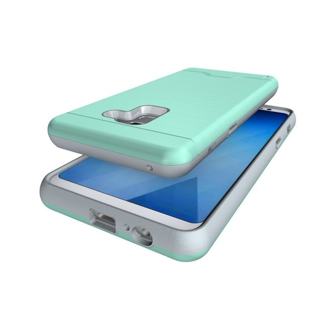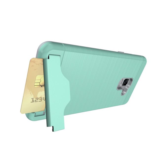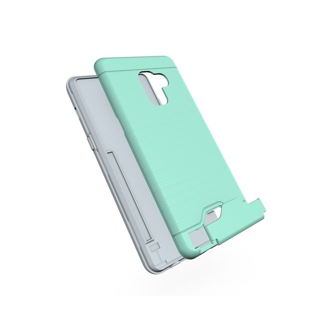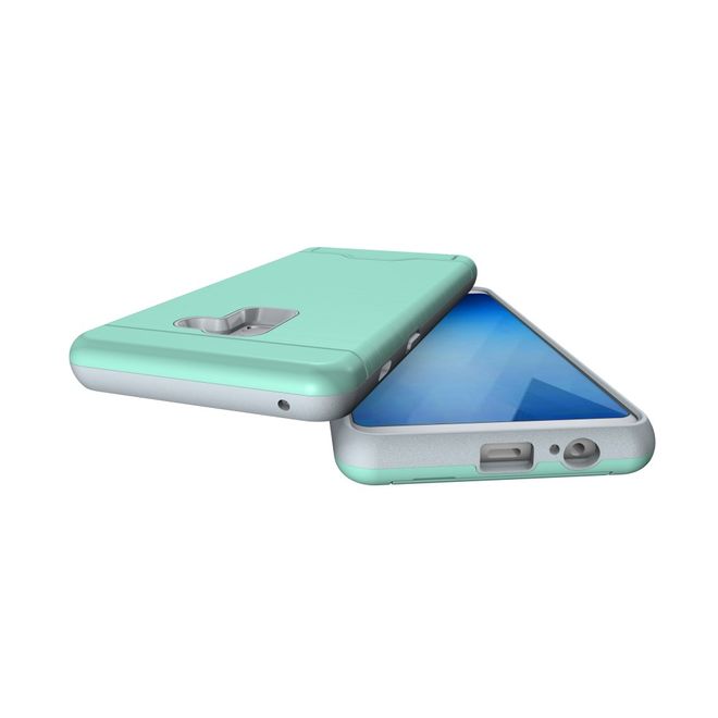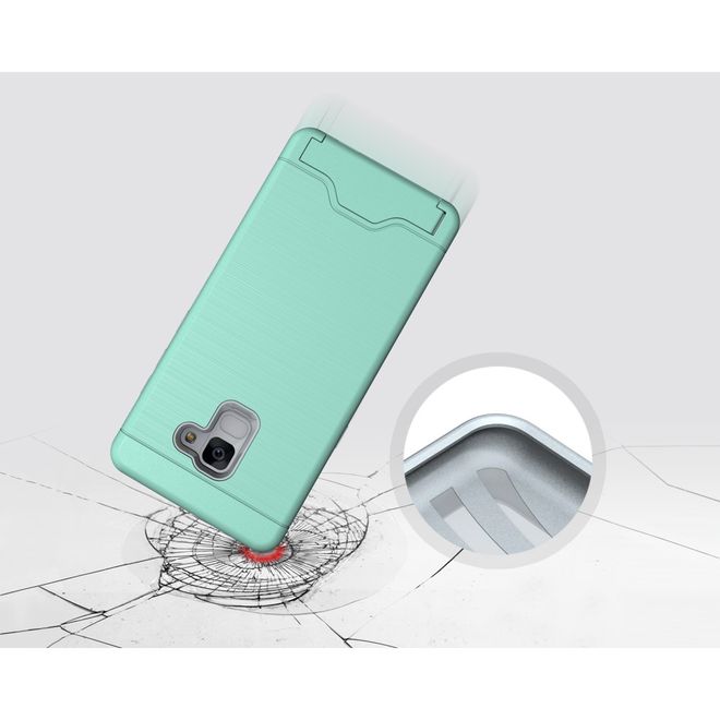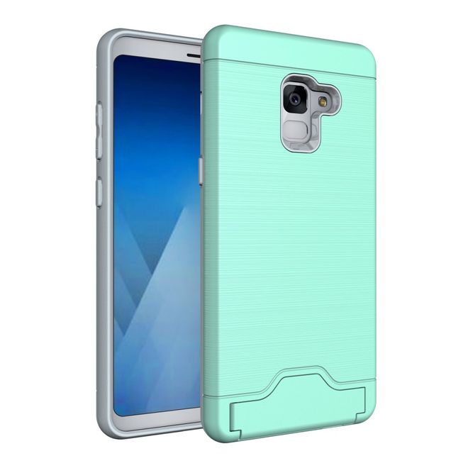 Samsung Galaxy A8+ (2018) Hülle - Plastik Case - mit Visitenkartenfach und Kickstand - cyan