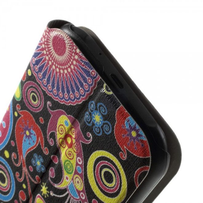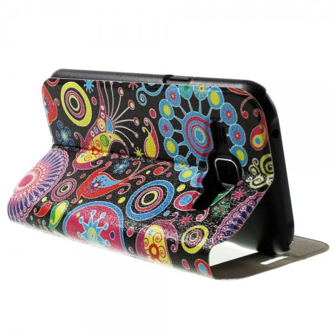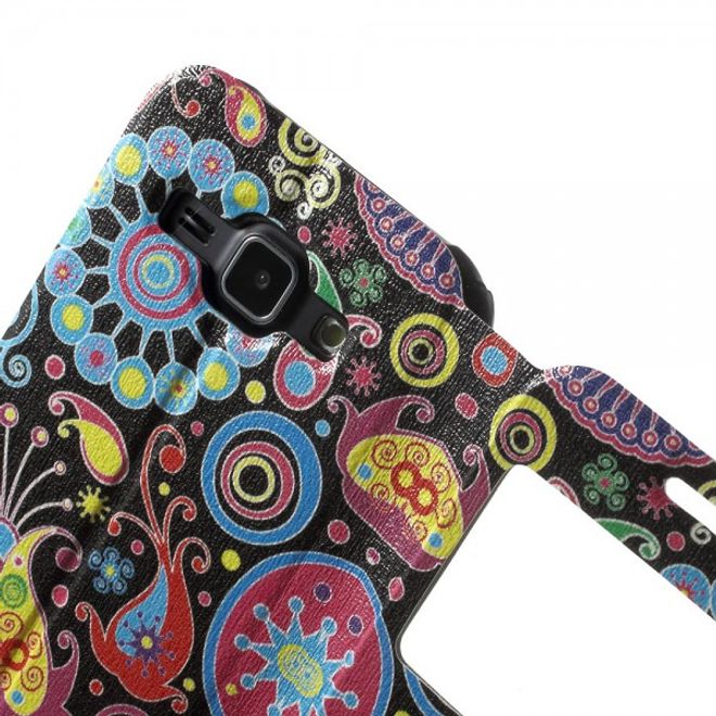 Samsung Galaxy J1 Leder Case mit farbigem Muster und Fenster