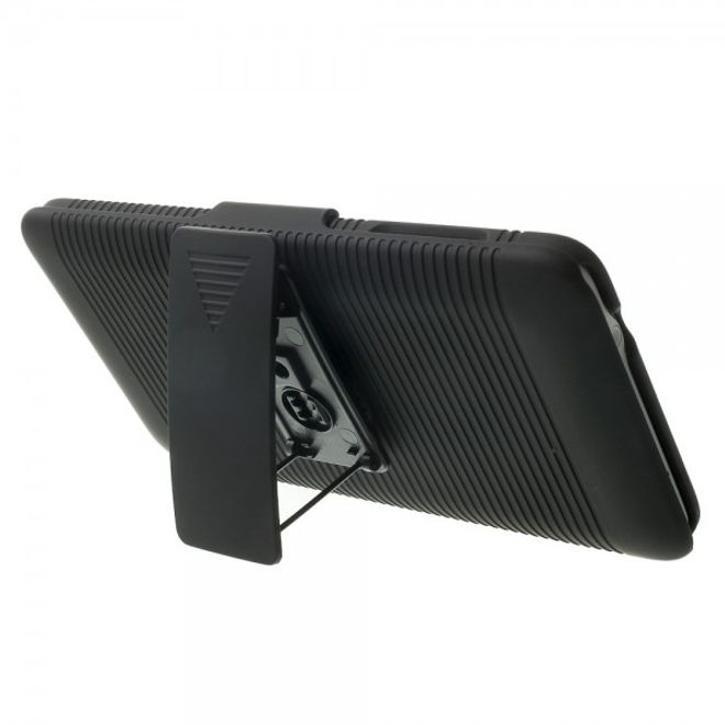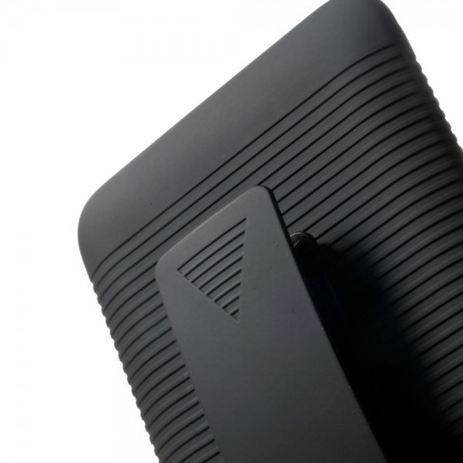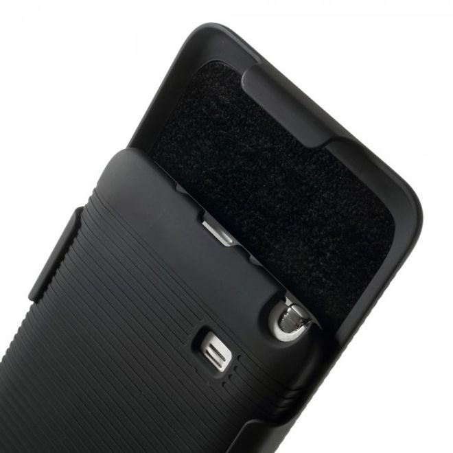 Samsung Galaxy Note 4 Robustes Hart Plastik Case mit Streifen und Gurthalterung - schwarz