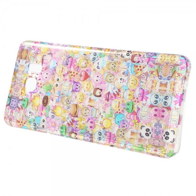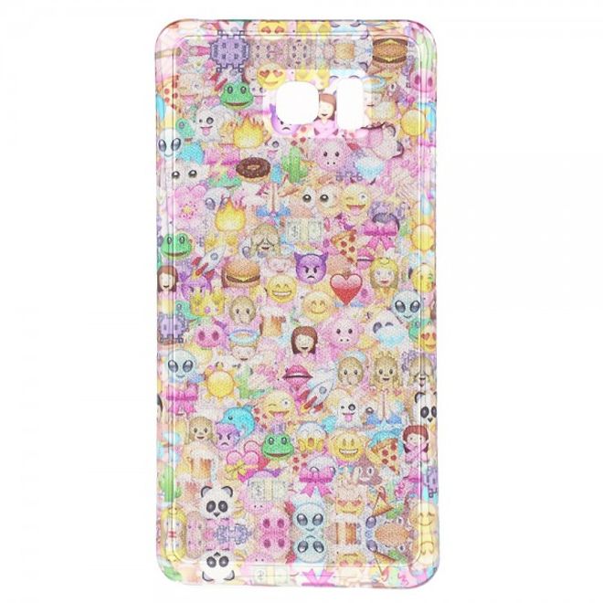 Samsung Galaxy Note 5 Elastisches, leicht glänzendes Plastik Case mit vielen kleinen Cartoon Gesichtern