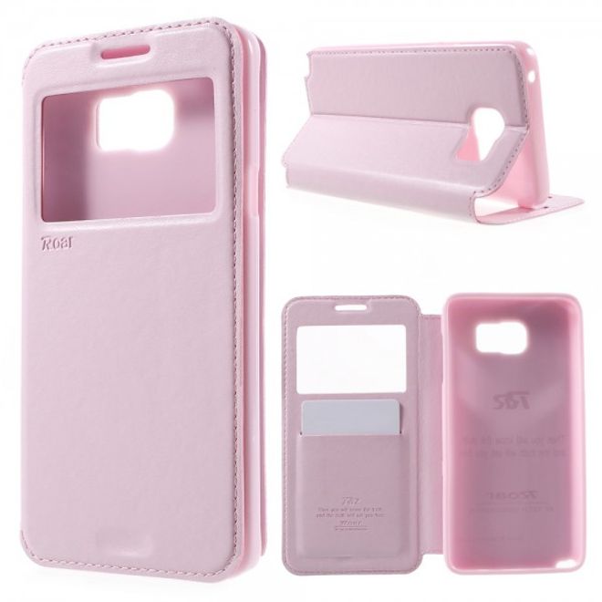 Samsung Galaxy Note 5 Roar Korea Leder Case mit kleinem Fenster - pink