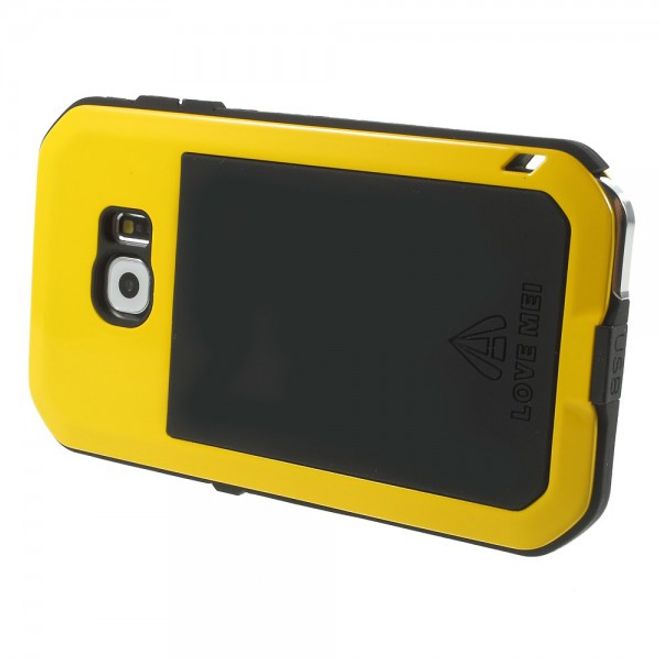 Samsung Galaxy S6 LOVE MEI Ultrarobustes Metall, Silikon und gehärtetes Glas Case - gelb
