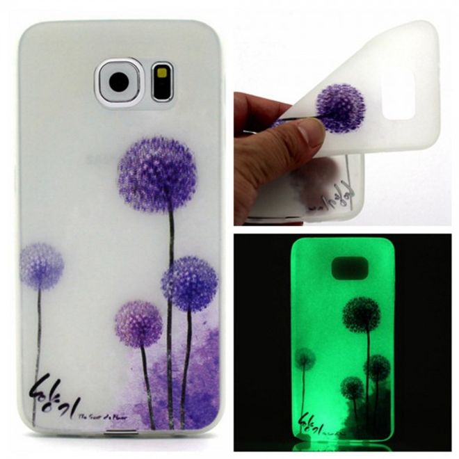 Samsung Galaxy S7 Elastische, leuchtende Plastik Case Hülle mit purpurnem Löwenzahn