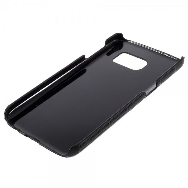 Samsung Galaxy S7 Hart Plastik Case Hülle mit lederartiger Oberfläche und Krokodilmuster - schwarz