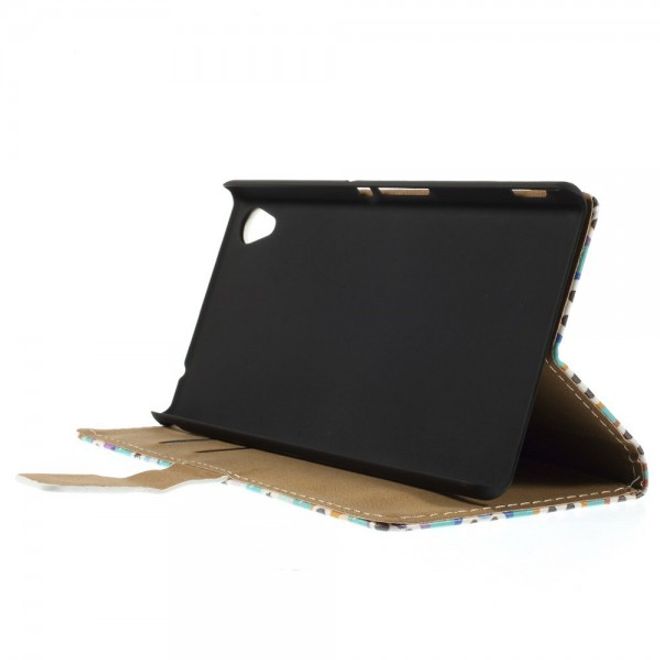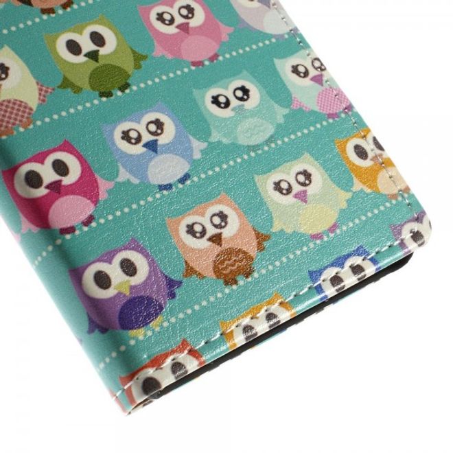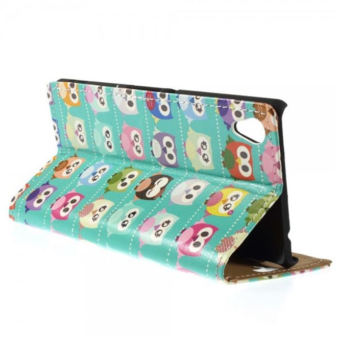 Sony Xperia M4 Aqua Leder Case mit vielen kleinen Eulen - cyan
