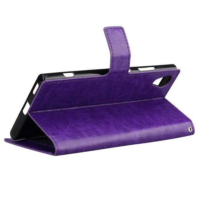 Sony Xperia XA1 Plus Handy Hülle - Crazy Horse Leder Bookcover - mit Standfunktion - purpur