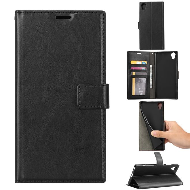 Sony Xperia XA1 Plus Handy Hülle - Crazy Horse Leder Bookcover - mit Standfunktion - schwarz