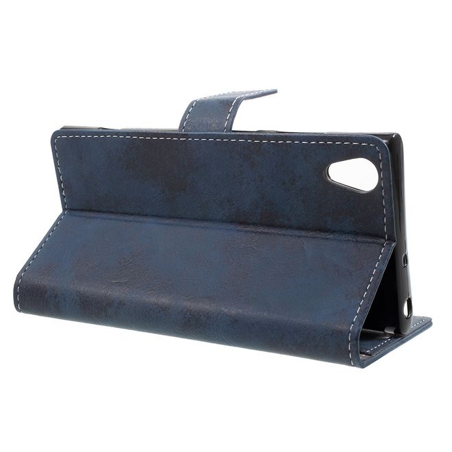 Sony Xperia XA1 Plus Hülle - Handy Case aus Leder - im Vintage Look - dunkelblau