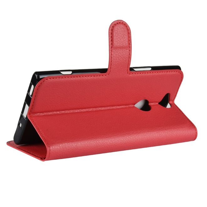 Sony Xperia XA2 Plus Handy Hülle - Litchi Leder Bookcover Series - rot