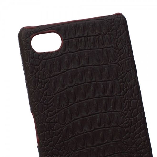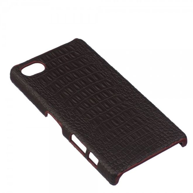 Sony Xperia Z5 Compact Hart Plastik Case Hülle mit lederartiger Oberfläche und Krokodiltextur - kaffeefarben
