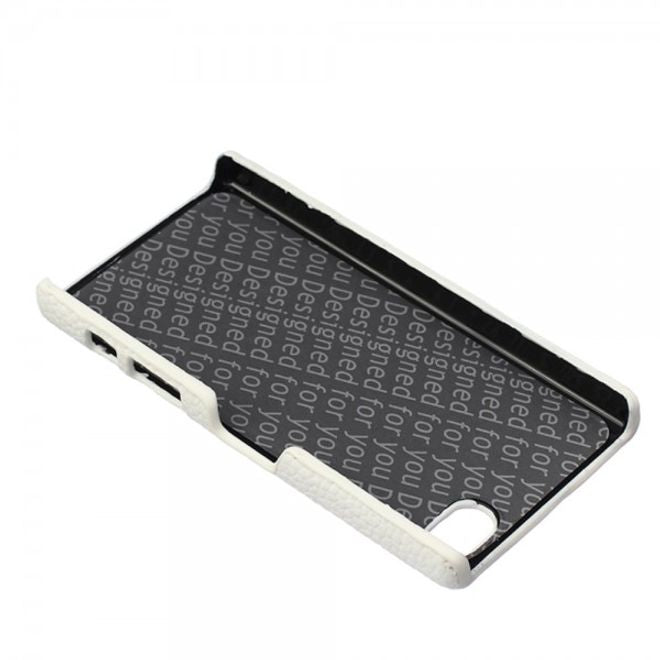 Sony Xperia Z5 Compact Hart Plastik Cover Hülle mit Oberfläche aus Echtleder - weiss