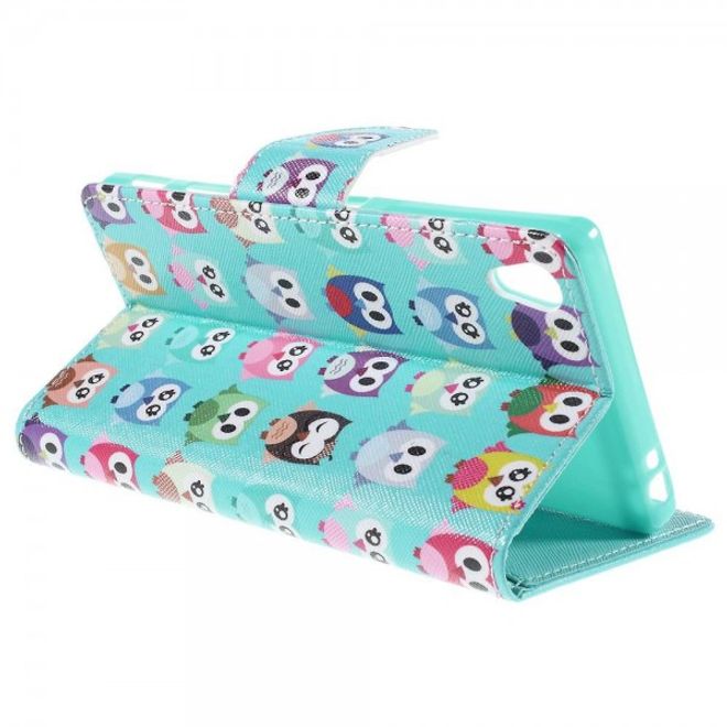 Sony Xperia Z5 Premium/Dual Robuste Leder Case Hülle mit vielen kleinen Eulen