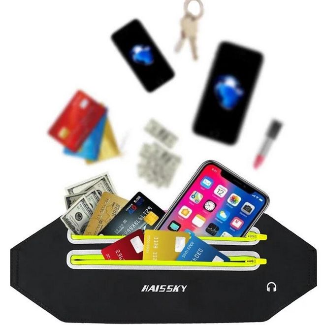 Die coole Universelle Sport Bauchtasche für Handys bis 6.5 Zoll in schwarz mit gelben Reissverschlüssen und silbernen Reflektoren trägt sich dank dem flachen, enganliegenden Design unauffällig unter oder auf Ihrer Kleidung und ist ein Muss für alle Jogging-, Wander-, Camping- und Radfahrer-Liebhaber. Die Bauchtasche bietet genug Platz für Ihr Smartphone und andere kleinere Wertsachen wie z.B. Kreditkarte und Geld und hat zwei Reissverschlussfächer sowie einen praktischen Kopfhörerausgang. Dank elastischem, verstellbarem Gurt passt die Bauch-/Gürteltasche auf fast jede Taille.