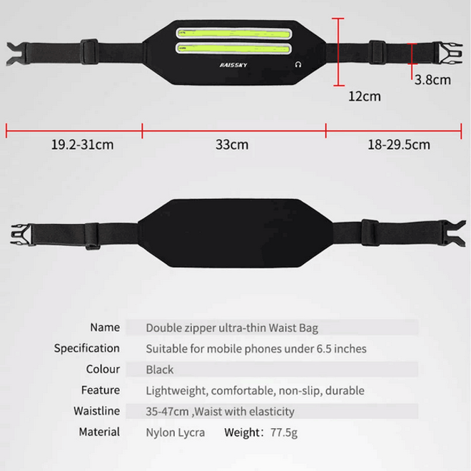 Universelle Sport Bauchtasche für Handys bis 6.5 Zoll, mit zwei Reissverschlussfächern
