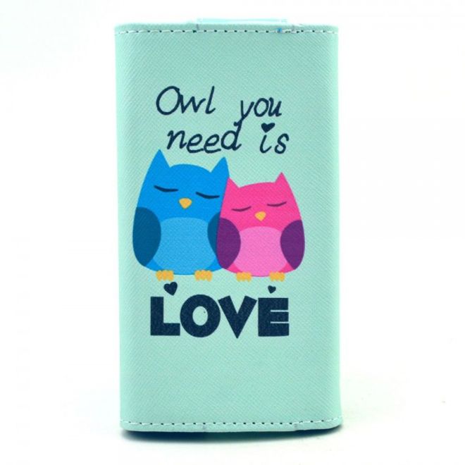 Universelles Leder Case für Smartphones bis 14.4x7.5x1.5cm mit verliebten Eulen und Schriftzug