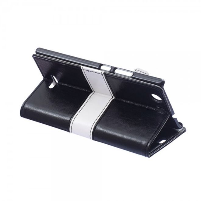 Wiko Bloom2 Zweifarbige Crazy Horse Leder Cover Hülle - schwarz
