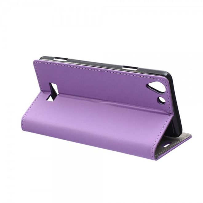 Wiko Selfy 4G Modische Leder Case Hülle mit Kreditkartenslots - purpur