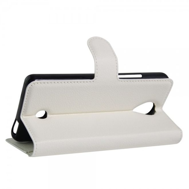 Wiko U Feel Handyhülle - Cover aus Leder - mit Litchitextur und Standfunktion - weiss