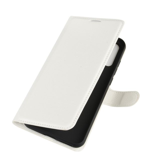 Wiko View 4 / View 4 Lite Handy Hülle - Litchi Leder Bookcover Series - weiss
